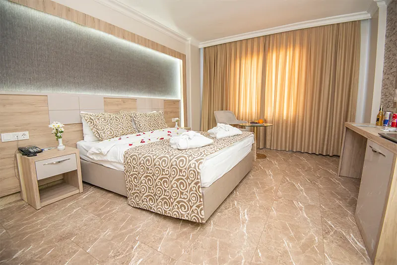 Family Room, 23m2 + 23m2’den oluşan 1+1 şeklinde olup, ara koridorla geçiş sağlanmaktadır. Bir tarafta French Bed diğer tarafta Twin Bed bulunmaktadır.
